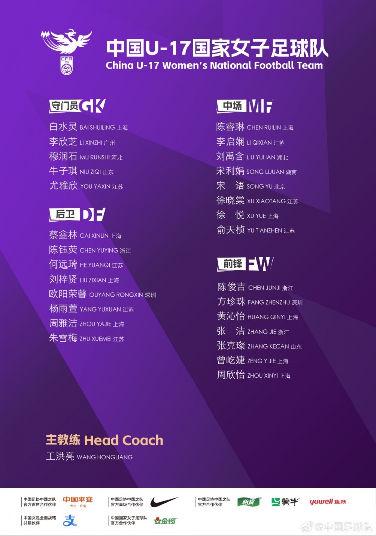 开云app下载-U17女足集训名单:28人入选,王洪亮挂帅,朱挺、姜宁为训练员