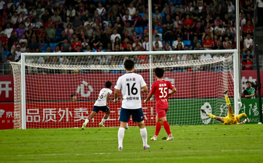42分钟,上场演出帽子戏法的李皓然本场首次射门,被对方门扑出。补时阶段,周宇因头部不适倒地,离场重新接受包扎头部,并在裁判的要求下清洗身上血迹。