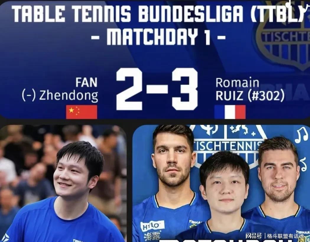樊振东此次的团体赛中将担任一单,出战了两场比赛,遗憾的是樊振东的德甲首秀,出战两盘的比赛均遗憾落败。