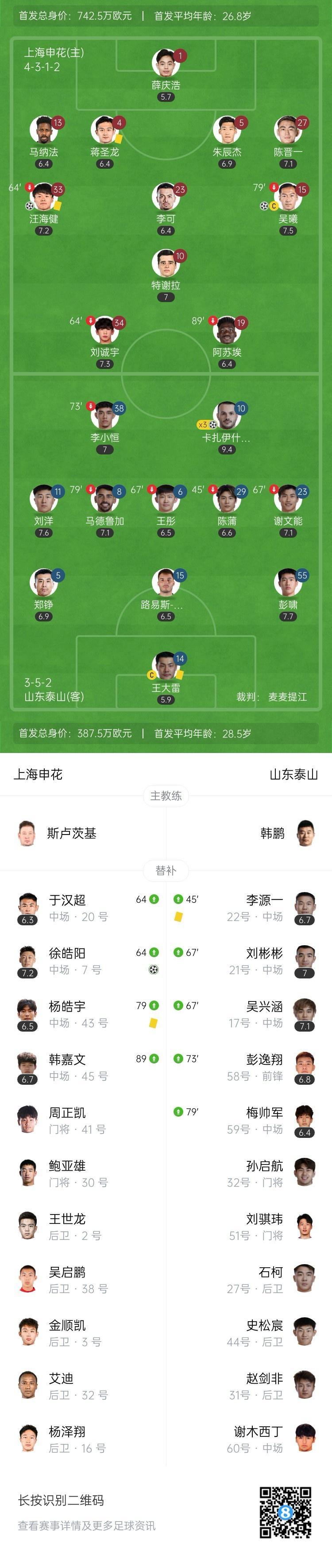 距榜首3分!申花3-3泰山近6轮仅1胜 瓦科戴帽2轮7球王大雷送点
